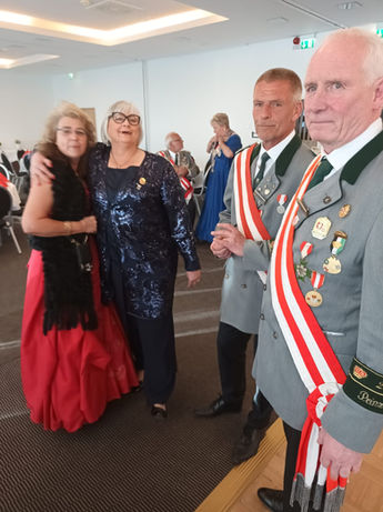 Nach einem reichhaltigen und sehr schmackhaften Abendessen, traditionsgemäß unterbrochen durch die Laudatien auf unsere Repräsentanten, gehalten durch Irina Ginko auf das Kronprinzenpaar und Renate Köpp auf das Königspaar, spielte die Band „Zweiklang“ aus Bünde zum Eröffnungstanz für unsere Majestäten auf und die Tanzfläche füllte sich zunehmend.